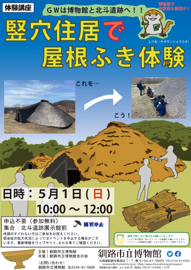 【博物館】竪穴住居で屋根ふき体験(5月1日)