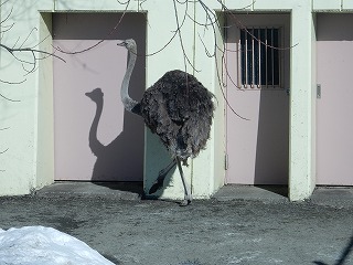寒い中、元気にしているダチョウの夫婦。