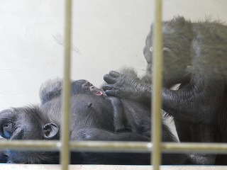 隣のチンパンジーばかり見ていたから拗ねてしまったのかな。