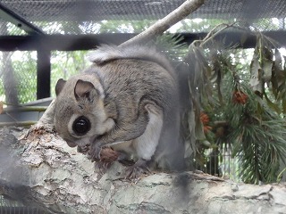 入口から入ると、まず、エゾリスとエゾモモンガのケージがあります。