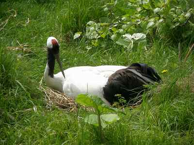 北海道ゾーン内にあるタンチョウ観察広場から見えるところにオスの「K6」、メスの「マリ」のペアがいます。